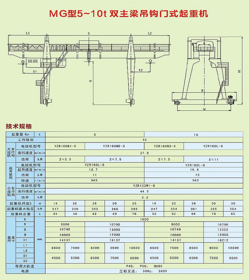 LH型5t、10t、16t電動葫蘆橋式起重機(jī)